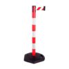 Plastmasas statīvs ar izvelkamu lentu un gumijas pamatni. Statīvs sarkans ar baltām joslām. Stabils. Izmēri: statīva augstums 1010mm, statīva d=63mm, pamatnes d=410x430mm, izvelkamās lentas platums 48mm, lentas garums 3.6m. Pamatne no pārstrādātas gumijas. Izmantojams gan iekštelpās, gan ārā. Lentas pieejamās krāsas: sarkanbalta. Svars: 8kg.