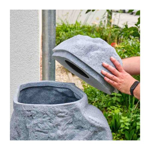 Tvertne lietus ūdens uzkrāšanai START (dabiskā akmens veidolā). Komplektā ietilpst: tvertne 230l, blīve, lietus ūdens savācējs/novirzītājs, 3/4 collu misiņa krāns, teflona blīvēšanas lente. Tilpums: 230L. Materiāls: 100% pārstrādāts polietilēns. Krāsa: gaiši pelēka. Izmēri: platums 700mm, dziļums 700mm, augstums 1000mm. Caur notekcaurulēm pa novirzītāju lietus ūdens tiek novadīts uz tvertni. Svars: 12kg.