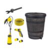 Tvertne (muca) lietus ūdens savākšanai un uzkrāšanai RAIN ar iekļautu iegremdējamo sūkni un papildaprīkojumu. Pilna komplektācija: tvertne 140l, Karcher BP sūknis (līdz 3800l/h; maksimālā jauda 400W, spiediens max. 1.1 bārs, iegremdēšanas dziļums maks. 7m, ienākošā ūdens maks. temperatūra 35 grādi pēc Celsija, strāvas kabelis 10m, spriegums 230V, frekvence 50Hz) ar savienojumu komplektu, laistīšanas šļūtene 25m ar universālu savienotāju un regulējamu garumu, lietus ūdens novirzītājs ar filtru un 1/2 collu vītnes krāns. Tilpums: 140L. Materiāls: polietilēns. Izmēri: platums 600mm, dziļums 600mm, augstums 740mm. Caur notekcaurulēm pa novirzītāju lietus ūdens tiek novadīts uz tvertni. Iebūvēts priekšfiltrs pasargā sūkni no piesārņojuma. Tūlītēja uzstādīšana pie tvertnes sienas, izmantojot ērtu klipsi ar ieslēgšanas/izslēgšanas slēdzi. Svars: 18kg.