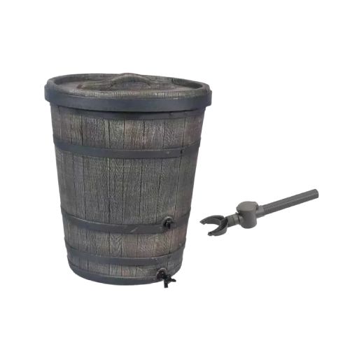 Plastmasas tvertne (muca) lietus ūdens uzkrāšanai RAIN (plastmasas krānu, ūdens novirzītāju un vāku), 130l [EF]