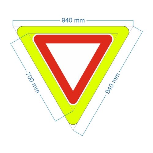 Priekšrocības zīme Nr.206F/Dodiet ceļu, 940x940x940mmmm ar fluorescējošu rāmi, 2. atst. klase