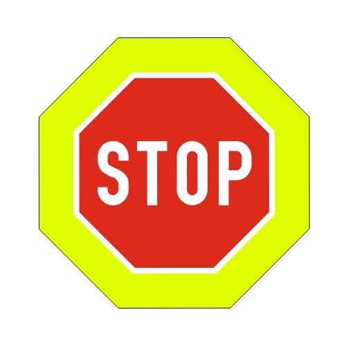 Priekšrocības zīme Nr.207F/Neapstājoties tālāk braukt aizliegts, 1200x1200mm ar fluorescējošu rāmi, 3. atst. klase