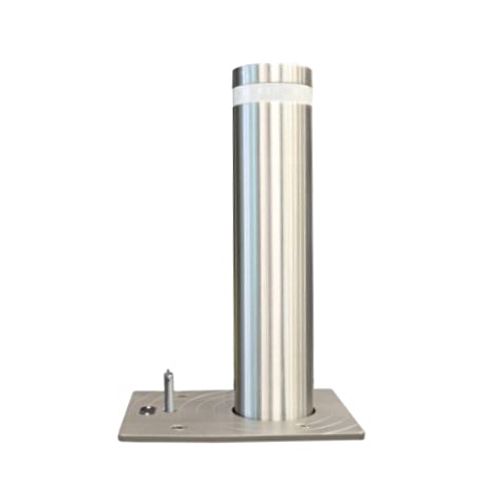 Pusautomātisks paceļams stabs, nerūsējošā tērauda, hidraulisks. Izmēri: diametrs 120mm, augstums 500mm, biezums 8mm. Ar atstarojošu lentu augšpusē.
