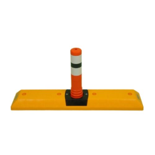 PVC automašīnu atdure jeb parkošanās barjera (1000x200mm) ar poliuretāna stabiņu (dzeltenu), h=465mm [TEM]