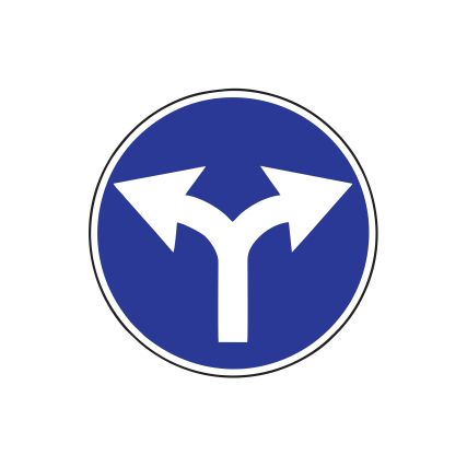 Rīkojuma zīme Nr.406/Braukt pa labi vai pa kreisi. Izmēri: d=600mm. 1. atstarošanas klase.