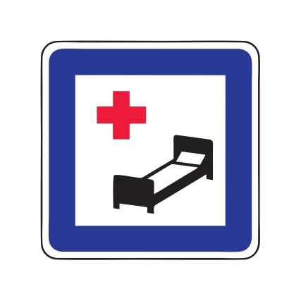 Servisa zīme Nr.602/Slimnīca. Izmēri: 600x600mm. 1. atstarošanas klase.