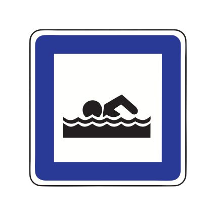 Servisa zīme Nr.618/Peldvieta vai peldbaseins. Izmēri: 700x1050mm. 1. atstarošanas klase.