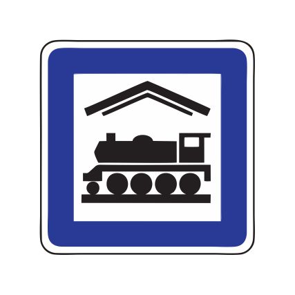 Servisa zīme Nr.626/Dzelzceļa stacija. Izmēri: 600x600mm. 2. atstarošanas klase.