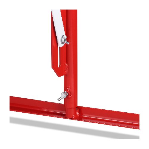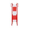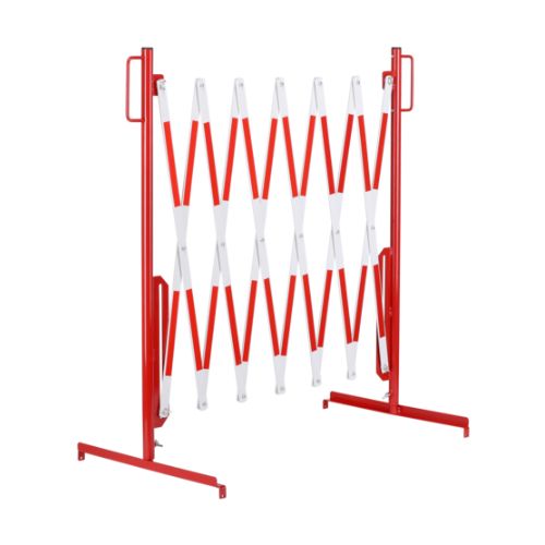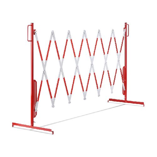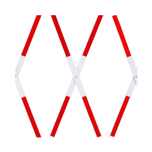 Šķērveida barjera. Izgatavota no pulverkrāsota metāla (metāla biezums 4mm) ar sarkanām atstarojošām uzlīmēm. Izmēri: garums 3600mm, platums 505mm, augtums 985mm. Platums asapiestā veidā 335mm, biezums saspiestā veidā 175mm. Krāsa: sarkanbalta. Izmantojama iekštelpās. Svars: 12kg.