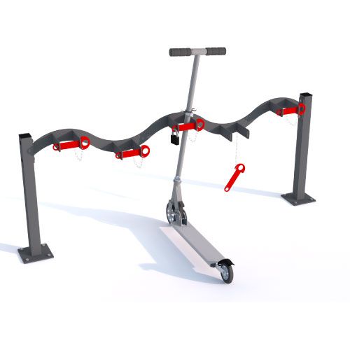 Skrejriteņu statīvs uz divām masīvām kājām, kas izgatavotas no 50x50x2mm profila. Pieejams kā betonēšanai, tā skrūvēšanai pie sienas. Iespēja izvēlēties tērauda veidu un krāsu.