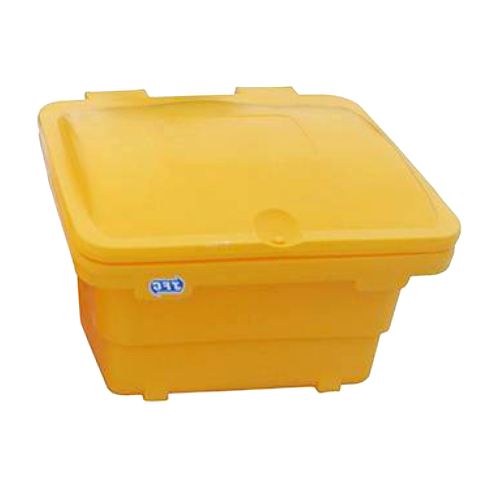 Smilts/sāls plastmasas konteiners. Krāsa: dzeltena. Ietilpība 175L. Izmēri: platums 860mm, dziļums 860mm, priekšējās daļas h=420mm, aizmugurējās daļas h=645mm. Konteiners izgatavots no augstas kvalitātes polietilēna (MDPE), kas izturīgs pret mainīgiem laika apstākļiem, UV stariem un mehāniskiem bojājumiem. Konteiners aprīkots ar vāku, kas piestiprināts pie korpusa ar nerūsējoša materiāla eņģēm. Īpaši izstrādātā forma atvieglo transportēšanu un uzglabāšanu (var sakraut vienu konteineru citā). Izturīgs un elastīgs. Plakanā pamatne ļauj izņemt smilšu un sāls maisījumu no konteinera līdz pašam galam. Ir iespējams izveidot caurumu konteinera aizvēršanai ar piekaramo atslēgu. Konteiners ir pilnībā pārstrādājams. Pieejamās standarta krāsas: dzeltena, zaļa, zila, pelēka. 5 gadu garantija (konteinera korpusam).