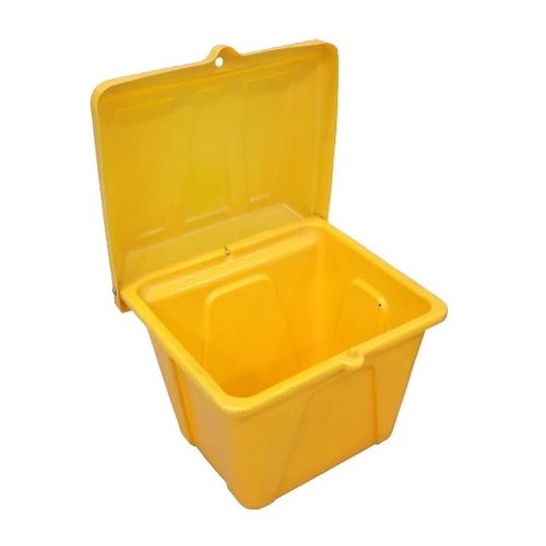 Smilts/sāls plastmasas konteiners. Krāsa: pelēka. Ietilpība 100L. Izmēri: platums 600mm, dziļums 660mm, priekšējās daļas h=440mm, aizmugurējās daļas h=600mm. Konteiners izgatavots no augstas kvalitātes polietilēna (MDPE), kas izturīgs pret mainīgiem laika apstākļiem, UV stariem un mehāniskiem bojājumiem. Konteiners aprīkots ar vāku, kas piestiprināts pie korpusa ar nerūsējoša materiāla eņģēm. Īpaši izstrādātā forma atvieglo transportēšanu un uzglabāšanu (var sakraut vienu konteineru citā). Izturīgs un elastīgs. Plakanā pamatne ļauj izņemt smilšu un sāls maisījumu no konteinera līdz pašam galam. Ir iespējams izveidot caurumu konteinera aizvēršanai ar piekaramo atslēgu. Konteiners ir pilnībā pārstrādājams. Pieejamās standarta krāsas: dzeltena, zaļa, zila, pelēka. 5 gadu garantija (konteinera korpusam). Svars: 8kg.