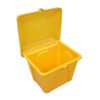 Smilts/sāls plastmasas konteiners. Krāsa: zila. Ietilpība 200L. Izmēri: platums 720mm, dziļums 800mm, priekšējās daļas h=570mm, aizmugurējās daļas h=690mm. Konteiners izgatavots no augstas kvalitātes polietilēna (MDPE), kas izturīgs pret mainīgiem laika apstākļiem, UV stariem un mehāniskiem bojājumiem. Konteiners aprīkots ar vāku, kas piestiprināts pie korpusa ar nerūsējoša materiāla eņģēm. Īpaši izstrādātā forma atvieglo transportēšanu un uzglabāšanu (var sakraut vienu konteineru citā). Izturīgs un elastīgs. Plakanā pamatne ļauj izņemt smilšu un sāls maisījumu no konteinera līdz pašam galam. Ir iespējams izveidot caurumu konteinera aizvēršanai ar piekaramo atslēgu. Konteiners ir pilnībā pārstrādājams. Pieejamās standarta krāsas: dzeltena, zaļa, zila, pelēka. 5 gadu garantija (konteinera korpusam). Svars: 14kg.
