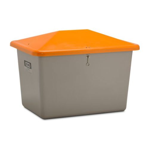 Smilts/sāls stiklšķiedras konteiners, pelēks ar oranžu vāku, 700l