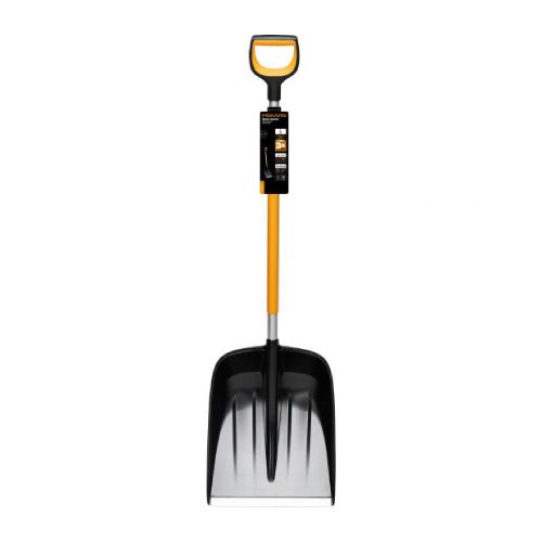 Sniega lāpsta X-series (Fiskars). Ideāli piemērota vieglai, ātrai un efektīvai sniega tīrīšanai no lielām platībām, piemēram, brauktuvēm, gājēju celiņiem, ietvēm u.c. Aukstuma izturīga līdz -30 grādiem. Izmēri: garums 1310mm, platums 350mm. Lāpsta ir veidota no zemas berzes materiāla, kas ļaus sniegm vieglāk noslīdēt no lāpstas. Viegls, anodēts alumīnija rokturis. Izturīgā polimēra lāpsta ir aukstuma izturīga līdz -30º. D-veida SoftGrip™ rokturis ir novietots ērtā strādāšanas leņķī un ir pietiekami liels, lai būtu iespējams strādāt ar lieliem ziemas cimdiem. Svars: 1.4kg.