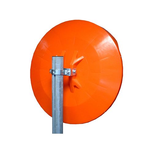 Sfērisks spogulis ø80cm oranžā plastikāta korpusā. Noturīgs pret triecieniem un UV starojumu. Iekļauta stiprinājuma skava. Svars: 5,1kg.