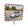 Spogulis, sarkans/balts, četrstūra (60x80cm). Kopējie izmēri: 890x675x100mm mm. Aprīkots ar 2. atstarošanas klases uzlīmi (spogulis īpaši labi pamanāms sliktos laika apstākļos un tumsā). Izgatavots no polikarbonāta. Komplektā ar stiprinājumiem. Redzamības diapazons: 15-22m. UV staru izturīgs, iztur līdz 117km/h lielu vēja spēku. Spoguli var novietot dažādos leņķos. Pielietojams gan ārā, gan iekštelpās. Svars: 6,3kg. 5 gadu garantija.