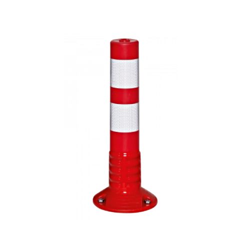 Stabiņš lokans, sarkans. Izmēri: garums 460mm, diametrs 80mm, pamatnes diametrs 200mm. Aprīkots ar 2 atstarojošām joslām. Stiprināšana pie pamatnes ar 3 skrūvēm (skrūves neietilpst cenā!). Izgatavots no termoplastiska poliuretāna. Augsta nodilumizturība. Svars: 2kg.