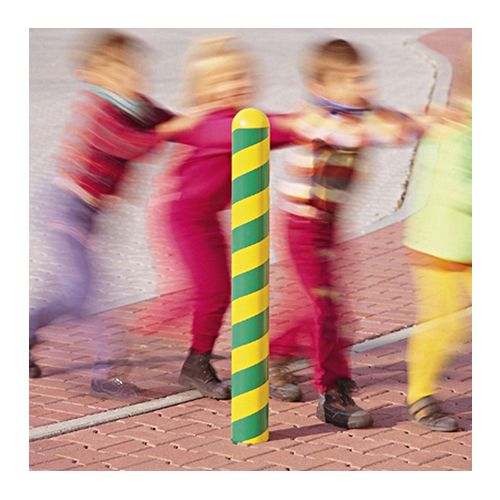 Tērauda stabs VENEZIA – ar trijstūrveida atslēgu, ar 2 ķēdes cilpām, betonējams. Krāsa: dzelteni zaļa (pieejamas dažādas krāsu variācijas). Izmēri: diametrs 108mm, augstums virs pamatnes 950mm, augstums zem pamatnes 350mm. Svars: 16kg.