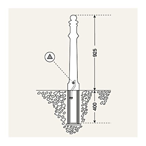 Stabs WAPPEN – ar trijstūrveida atslēgu, ar 2 ķēdes cilpām, d=85mm, h=925mm (400mm zem pamatnes)