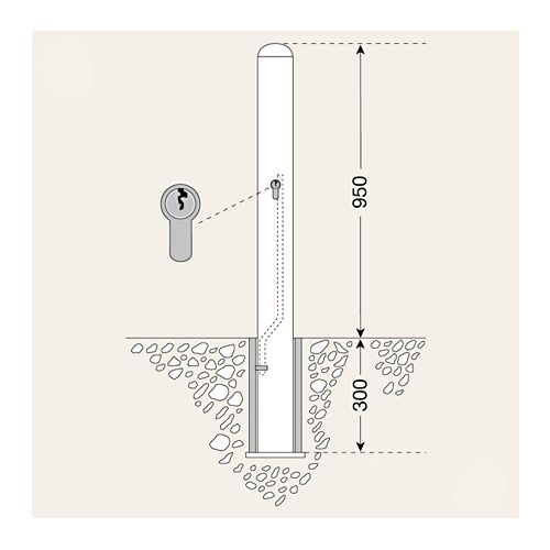 Stabs WIEN – ar iekšējo atslēgu, ar 1 ķēdes cilpu, d=76mm, h=950mm (300mm zem pamatnes)
