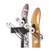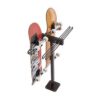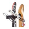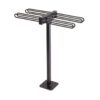 Statīvs 4 skrituļdēļiem. Stiprināms pie pamatnes ar skrūvēm (neietilpst komplektā!). Skrituļdēļus pie statīva var pieslēgt ar piekaramo atslēgu, troses slēdzeni vai U-veida slēdzeni (nav iekļauts komplektācijā!). Izgatavots no tērauda caurules antracīta pelēkā krāsā (RAL 7021). Pamatnes plāksne 150x150x5mm, plāksnē 4 caurumi. Skrituļdēļa piestiprināšanas vietās metāla stieples d=6mm. Kopējie izmēri: 310x432x585mm. Svars: 3.5kg.
