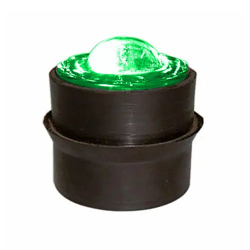 Stikla atstarotājs (360 grādu, bez “aklās zonas”). Krāsa: zaļa. Izmēri: d=50mm, h=50mm. Kompresijas pretestība: 40T. Materiāls: rūdīts stikls ar gumijas apvalku. Ūdensizturīgs. Stiprināms asfaltā vai betonā ar speciālu līmi. Vienkārša un ātra montāža. Uzstāda ceļa ietvju malās, ceļa barjerās, tuneļos u.c. Triecienizturīgs, izturīgs pret sniega tīrītājiem. Svars: 0.2kg.