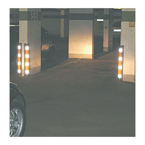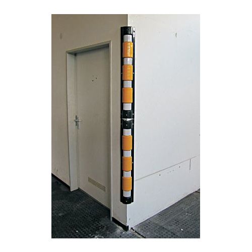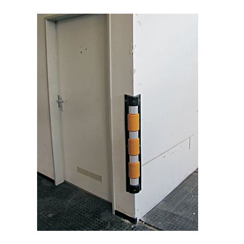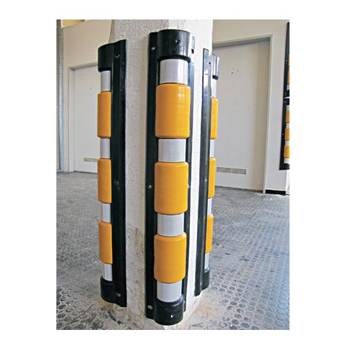 Stūru sargs ar amortizatoriem. Izmēri: garums 900mm, platums 95mm, biezums 35mm. Krāsa: dzeltena ar melnu. Aprīkots ar baltām atstarojošām līmplēvēm, amortizatori izgatavoti no mīksta PVC materiāla. Stiprināms ar skrūvēm (neietilpst cenā!). Svars: 1,8kg.