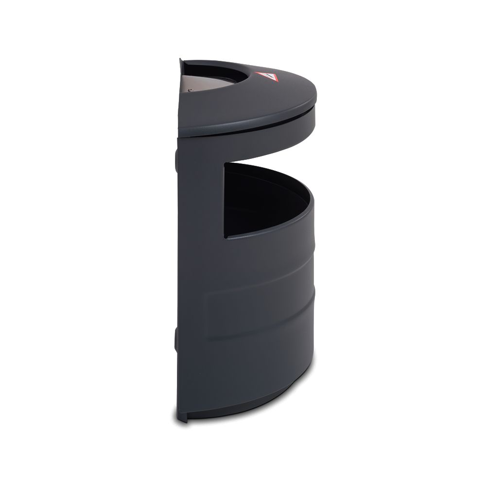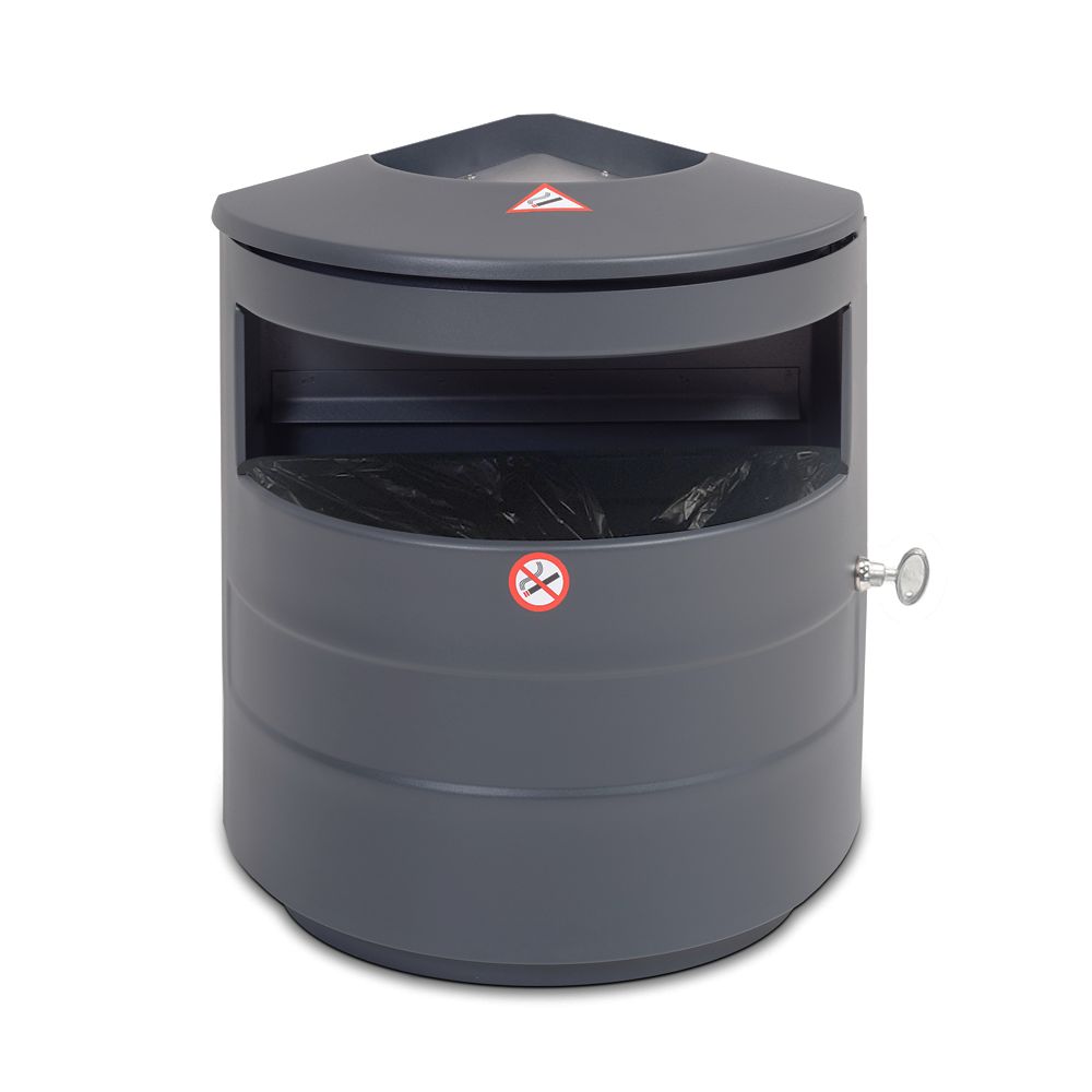 Tērauda atkritumu tvertne. Tilpums: 15L. Izmērs: 420x210x500mm. Atvērtne atkritumiem: 110x390mm. Vienpusējas durvis. Materiāls: cinkots tērauds (1mm). Nav perforēta. Ar uguns-drošības pelnu trauku augšpusē. Svars: 5.5kg.