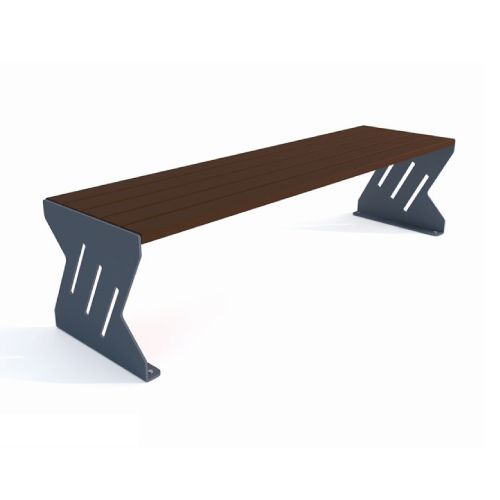 Tērauda soliņš ar koka dēlīšiem (5gab.). Izmēri: garums 1820mm, sēdekļa augstums 440mm, sēdekļa dziļums 500mm. Metāla detaļas cinkotas un krāsotas RAL tonī (pieejamie toņi: melna RAL 9005; grafīta pelēka RAL 7021; sudraba pelēka RAL 9006; pelēka RAL 9007; brūna RAL 8011; zaļa RAL 6018). Pieejams arī nerūsējošā tērauda variants (pēc pieprasījuma). Stiprināms pie pamatnes ar skrūvēm. Koka dēlīšu pieejamie toņi: gaišs ozols vai palisandrs (tumši brūns) – pēc izvēles. Metāla konstrukcija no 8mm lokšņu materiāla. Koka dēlīšu līstes 1800x90x37mm.