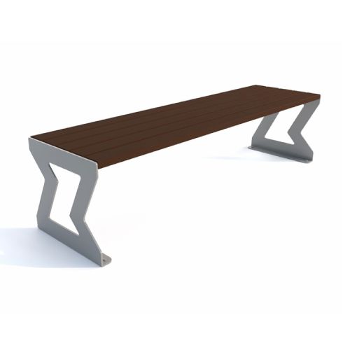 Tērauda soliņš ar koka dēlīšiem (5gab.). Izmēri: garums 1820mm, sēdekļa augstums 440mm, sēdekļa dziļums 500mm. Metāla detaļas cinkotas un krāsotas RAL tonī (pieejamie toņi: melna RAL 9005; grafīta pelēka RAL 7021; sudraba pelēka RAL 9006; pelēka RAL 9007; brūna RAL 8011; zaļa RAL 6018). Pieejams arī nerūsējošā tērauda variants (pēc pieprasījuma). Stiprināms pie pamatnes ar skrūvēm vai betonējams. Koka dēlīšu pieejamie toņi: gaišs ozols vai palisandrs (tumši brūns) – pēc izvēles. Metāla konstrukcija no 8mm lokšņu materiāla. Koka dēlīšu līstes 1800x90x37mm.