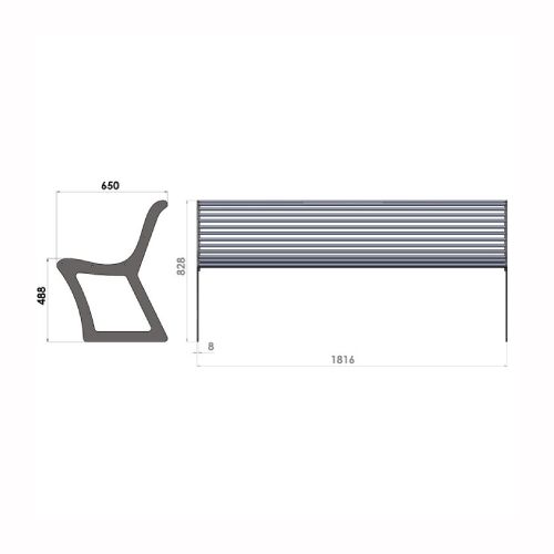 Tērauda soliņš ar atzveltni, 1816mm (cinkots/krāsots RAL tonī/divkrāsu)