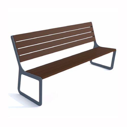 Tērauda soliņš ar atzveltni un koka dēlīšiem (8gab.). Izmēri: garums 1830mm, kopējais augstums 900mm, sēdekļa dziļums 400mm, sēdekļa augstums 440mm. Metāla detaļas cinkotas un krāsotas RAL tonī (pieejamie toņi: melns RAL 9005, grafīta pelēks RAL 7021, sudraba pelēks RAL 9006, brūns RAL 8011, zaļš RAL 6018). Pieejams arī nerūsējošā tērauda variants (pēc pieprasījuma). Brīvi stāvošs. Koka dēlīšu pieejamie toņi: gaišs ozols vai palisandrs (tumši brūns) – pēc izvēles. Metāla detaļām 8mm lokšņu materiāls. Koka līstes izmērs: 1800x90x37mm.
