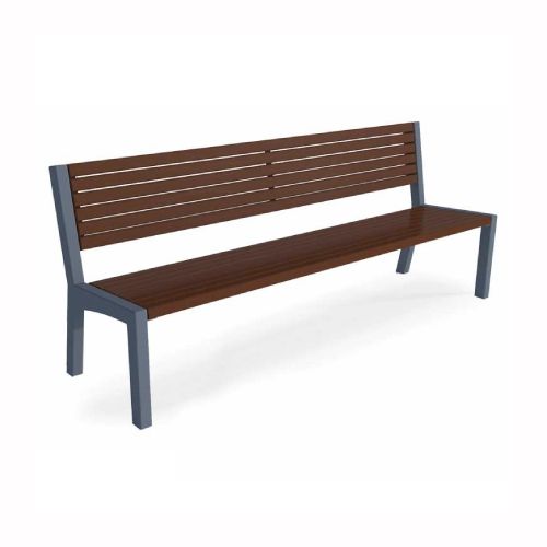 Tērauda soliņš ar atzveltni un koka dēlīšiem (14gab.). Izmēri: garums 1900mm, kopējais augstums 780mm, kopējais dziļums 700mm. Metāla detaļas cinkotas un krāsotas RAL tonī (pieejamie toņi: melna RAL 9005; grafīta pelēka RAL 7021; sudraba pelēka RAL 9006; pelēka RAL 9007; brūna RAL 8011; zaļa RAL 6018). Pieejams arī nerūsējošā tērauda variants (pēc pieprasījuma). Stiprināms pie pamatnes ar skrūvēm vai betonējams (pēc izvēles). Koka dēlīšu pieejamie toņi: gaišs ozols vai palisandrs (tumši brūns) – pēc izvēles. Konstrukcija no 40x40x4mm tērauda kvadrātcaurules un 3mm metāla lokšņu materiāla. Koka dēlīšu līstes 1800x90x37mm.