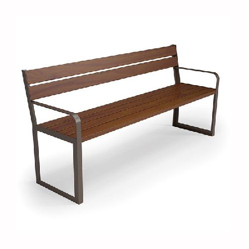 Tērauda soliņš ar atzveltni, roku balstiem un koka dēlīšiem (6gab.). Izmēri: garums 1800mm, sēdekļa augstums 450mm, kopējais augstums 810mm, sēdekļa dziļums 400mm. Metāla detaļas cinkotas un krāsotas RAL tonī (pieejamie toņi: melns RAL 9005, grafīta pelēks RAL 7021, sudraba pelēks RAL 9006, pelēks RAL 9007, dzeltens RAL 1023, brūns RAL 8011, sarkans RAL 3002, zaļš RAL 6018, oranžs RAL 2000). Pieejams arī nerūsējošā tērauda variants (pēc pieprasījuma). Brīvi stāvošs. Koka dēlīšu pieejamie toņi: gaišs ozols vai palisandrs (tumši brūns) – pēc izvēles. Konstrukcija no 40x40x4mm tērauda kvadrātcaurules. Koka dēlīšu līstes 1800x90x37mm.