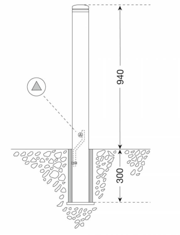 Tērauda stabs LEIPZIG ar trijstūrveida atslēgu, d=90mm, h=940mm (300mm zem pamatnes)
