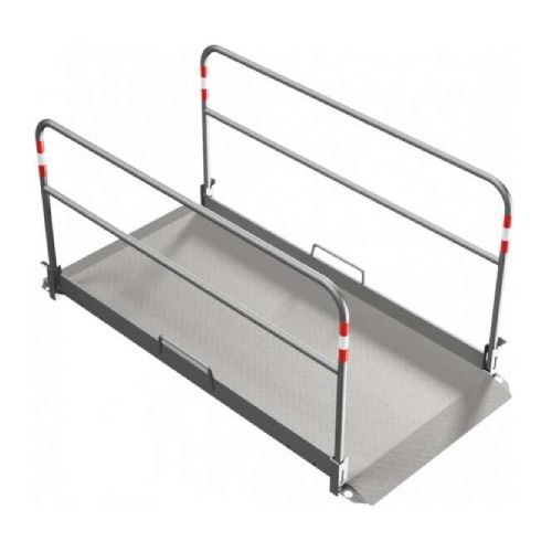 Tiltiņš tranšeju pārejām. Izmēri: platums 1m, garums 2.2m. Drošai grāvju un kanālu šķērsošanai. Izgatavots no alumīnija. Rampa ratiņkrēsliem, ratiņiem u.c. Grīdas pārsegs no pretslīdes alumīnija plāksnes (3/4mm). Sānu barjeras ar sarkanbaltām atstarojošām joslām. Abas margas nolokāmas. Rokturi abās pusēs (nodrošina ergonomisku pārvietošanu). Slodze: 200kg/m². Svars: 42kg.
