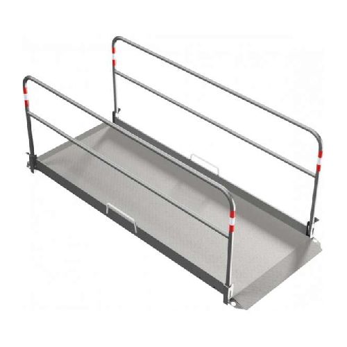 Tiltiņš tranšeju pārejām. Izmēri: platums 1m, garums 2.7m. Drošai grāvju un kanālu šķērsošanai. Izgatavots no alumīnija. Rampa ratiņkrēsliem, ratiņiem u.c. Grīdas pārsegs no pretslīdes alumīnija plāksnes (3/4mm). Sānu barjeras ar sarkanbaltām atstarojošām joslām. Abas margas nolokāmas. Rokturi abās pusēs (nodrošina ergonomisku pārvietošanu). Slodze: 200kg/m². Svars: 51kg.