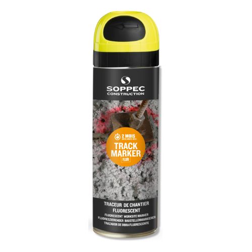 TRACK MARKER luminiscējoša krāsa marķēšanai (aerosols), dzeltena, 500ml. Kastē 12gab. Izmantojama arī uz mitrām virsmām. Ātri žūstoša (~ 10min.). Piemērota īstermiņa lietošanai – 3 mēnešu noturība. Piemērota marķēšanai uz asfalta, betona, akmens, grants, zemes, kokiem, smiltīm u.c. Izmantojama temperatūrā no -20 līdz + 50 grādiem pēc Celsija. Izturīgs aizsargvāciņš. Ar 1 aerosola baloniņu var noklāt ~35m (2cm platumā).