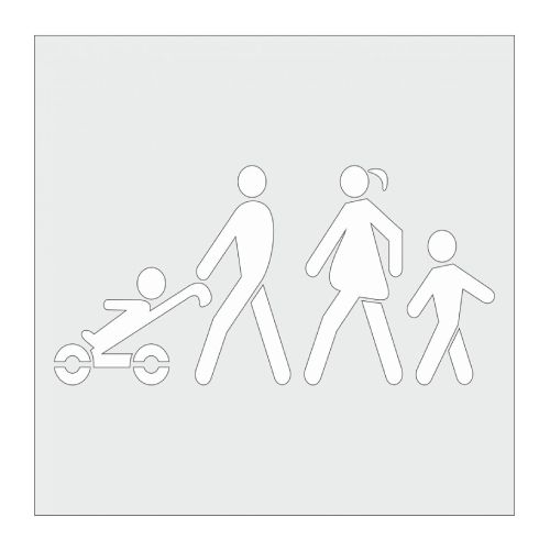 Trafarets “Ģimenēm ar bērniem”. Izgatavots no stiklašķiedras. Izmēri: simbola izmērs iekšpusē 870x410mm, trafareta izmērs 1000x1000mm.
