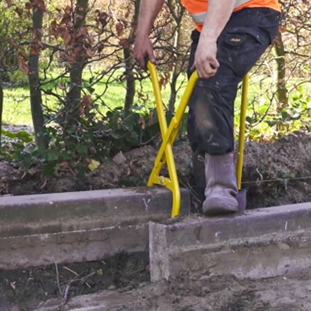 Transversais satvērējs ar gumijas saķeri 1 cilvēkam – dažādu betona un dabīgā akmens apmaļu pacelšanai un uzstādīšanai. Liela izmēra akmeņu pacelšanai ieteicams izmantot divas pacelšanas sviras. Izmēri: 880x500x160mm. Satvērēja garums: 900mm. Pulverkrāsots dzeltens (RAL 1021). Maksimālais regulēšanas platums 350mm. Minimālais regulēšanas platums 5mm. Kastē: 5gab. (cena norādīta par gab.). Garantija: 7 gadi (izņemot dilstošās daļas).