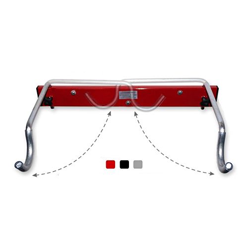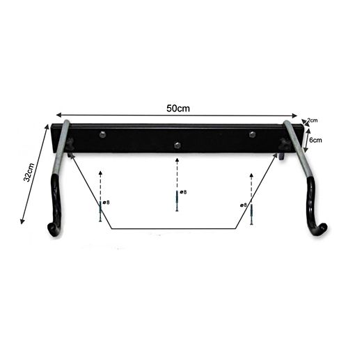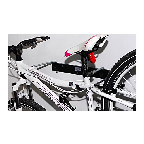 Velosipēda statīvs 1 velosipēdam, stiprināšanai pie sienas. Izmēri: garums 50cm, atlocītā veidā platums 32cm. Celtspēja līdz 25kg. Montāža ar 3 skrūvēm (iekļautas komplektā). Pieejamās krāsas: melns, sarkans, pelēks. Svars: 1,7kg.