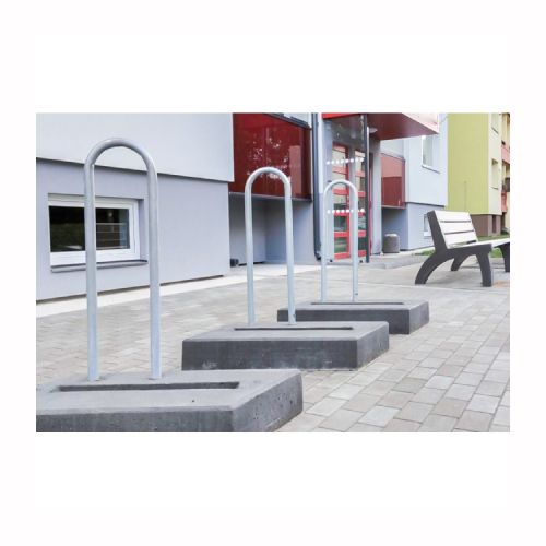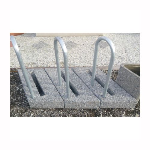 Velosipēdu statīva modulis. Izgatavots no betona ar metāla cauruli sānā. Piemērots 1 velosipēdam. No vairākiem moduļiem var veidot plašāku velosipēdu novietni. Izmēri: garums 850mm, platums 700mm, augstums 1000mm. Svars: 115kg. Iespējamie betona toņi: P101, P103, P106, V101, V103, V104.