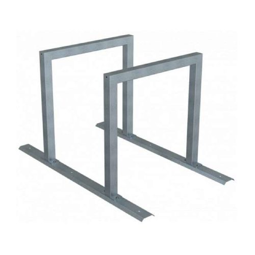 Velosipēdu statīvs 2 velosipēdiem ar sliedi piestiprināšanai. Karsti cinkots. Izmēri: augstums 800mm, kopējais garums: 1400mm, dziļums 800mm, atstatums no stīpām ~700mm. Izgatavots no 60x60mm kvadrātcaurulēm. Stiprināms pie zemes ar skrūvēm. Svars: 26.5kg.