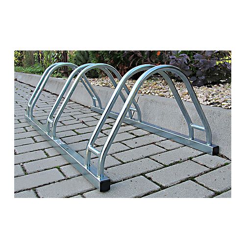 Velosipēdu statīvs 3 velosipēdiem. Velosipēdu novietošana iespējama no abām velostatīva pusēm.Cinkots, iespējams krāsot par papildu samaksu. Izmēri: garums 96cm, kopējais dziļums 45cm, augstums 30cm, attālums starp velosipēdu riepu centriem 36cm, caurules diametrs 2cm, platums riepas ievietošanai 6cm, svars 6kg.