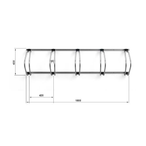 Piecvietīgs velosipēdu statīvs (vienpusējs). Stiprināms ar skrūvēm pie sienas (iespējams mainīt statīva pozīciju no 90 līdz 45 grādiem). Materiāls: cinkots tērauds, iespējams krāsot RAL tonī vai izgatavot no nerūsējošā tērauda par papildus samaksu. Izmēri: garums 180cm, kopējais dziļums 33cm, augstums 43cm, attālums starp velosipēdu riepu centriem 42cm, platums riepas ievietošanai 6.5cm, caurules d=18mm, caurules sieniņu biezums 2mm. Var regulēt Sienas profila izmērs: 30x30x1.5mm. Ideāli piemērots pagrabiem, garāžām vai citur. Svars: 10kg. 1.foto redzams statīvs no nerūsējošā tērauda.
