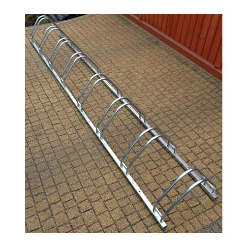 Velosipēdu statīvs 8 velosipēdiem. Velosipēdu novietošana iespējama no abām velostatīva pusēm.Cinkots, iespējams krāsot par papildu samaksu. Izmēri: garums 306cm, kopējais dziļums 45cm, augstums 30cm, attālums starp velosipēdu riepu centriem 36cm, caurules diametrs 2cm, platums riepas ievietošanai 6cm, svars 16kg.