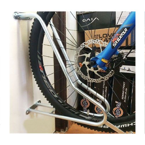 Velosipēdu statīvs WALL 5 riepas platumam līdz 80mm. Paredzēts piecu velosipēdu novietošanai pie sienas. Maksimālā pieļaujamā slodze vienam velosipēdam: 30kg. Stiprināms ar skrūvēm (komplektā). Komplektā arī stiprinājums aizmugurējai riepai (novērš sienu nosmērēšanos un stabilizē velosipēdu). Materiāls: cinkots tērauds. Savietojams ar velosipēdiem, kam ir dubļusargi, disku bremzes, kā arī elektriskajiem velosipēdiem. Izmēri: statīva platums 140mm, statīva garums 500mm, caurules šķērsgriezums d=18mm, caurules biezums 2mm. Statīvs paredzēts riepas platumam līdz 29×3.15 collām (8cm platums), saderība ar bremžu diskiem līdz d=203mm. Pieejams arī variants līdz 29×2.2 collām (5.5cm platums). Svars: 12.5kg.