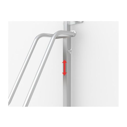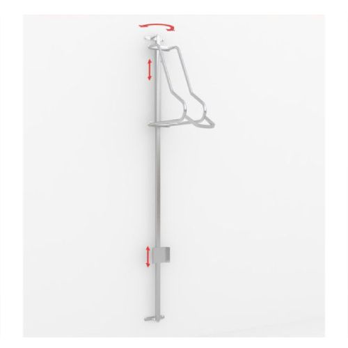 Velosipēdu statīvs WALL FAT 1 riepas platumam līdz 120mm (4.8 collām). Paredzēts viena velosipēda novietošanai pie sienas, kam platas riepas (saderīgs ar bremžu diskiem līdz d=203mm). Pilnībā vertikāli regulējams – ļauj regulēt statīva augstumu. Statīvu var pārvietot horizontāli, atvieglojot velosipēda noņemšanu un novietošanu, ja attālumi starp velosipēdiem ir mazi. Maksimālā pieļaujamā slodze: 30kg. Konkrētais modelis bez speciāla roktura (par papildus samaksu pieejams ar speciālo rokturi, kas paredzēts velosipēda pieslēgšanai pie rāmja). Stiprināms ar skrūvēm (komplektā). Komplektā arī stiprinājums aizmugurējai riepai (novērš sienu nosmērēšanos un stabilizē velosipēdu). Materiāls: cinkots tērauds. Savietojams ar velosipēdiem, kam ir dubļusargi, disku bremzes, kā arī elektriskajiem velosipēdiem. Izmēri: statīva dziļums 500mm, statīva vadotnes garums 1800mm (profils 25x25x1.5mm), caurules šķērsgriezums d=18mm, caurules biezums 2mm. Statīvs paredzēts riepas platumam līdz 29×2.2 collām (5.5cm platums). Konkrētais modelis bez speciāla roktura (par papildus samaksu pieejams ar speciālo rokturi, kas paredzēts velosipēda pieslēgšanai pie rāmja).