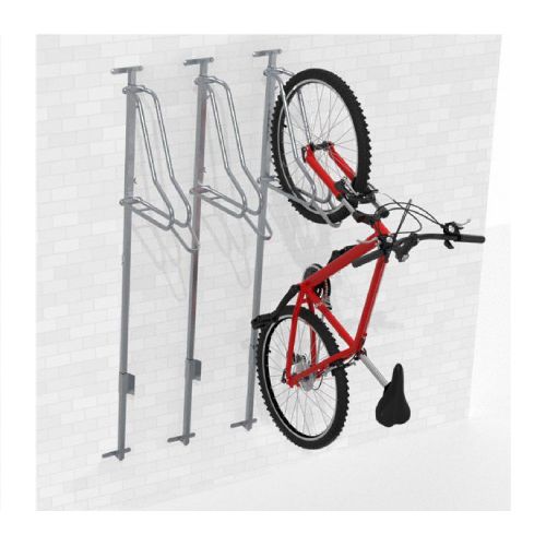 Velosipēdu statīvs WALL PREM 3 riepas platumam līdz 55mm. Paredzēts trīs velosipēdu novietošanai pie sienas. Pilnībā regulējams (uz augšu-leju/ pa kreisi-pa labi) – ļauj pielāgot pozīciju. Statīvu var pārvietot horizontāli, atvieglojot velosipēda noņemšanu un noevietošanu, ja attālumi starp velosipēdiem ir mazi. Maksimālā pieļaujamā slodze: 30kg. Stiprināms ar skrūvēm (komplektā). Komplektā arī stiprinājums aizmugurējai riepai (novērš sienu nosmērēšanos un stabilizē velosipēdu). Materiāls: cinkots tērauds. Savietojams ar velosipēdiem, kam ir dubļusargi, disku bremzes, kā arī elektriskajiem velosipēdiem. Izmēri: statīva dziļums 500mm, statīva vadotnes garums 1800mm (profils 25x25x1.5mm), caurules šķērsgriezums d=18mm, caurules biezums 2mm. Statīvs paredzēts riepas platumam līdz 29×2.2 collām (5.5cm platums). Pieejams arī variants līdz 29×3.15 collām (8cm platums), saderība ar bremžu diskiem līdz d=203mm. Konkrētais modelis bez speciāla roktura (par papildus samaksu pieejams ar speciālo rokturi, kas paredzēts velosipēda pieslēgšanai pie rāmja). Par papildus samaksu iespējams arī nerūsējošā tērauda variants. Svars: 15kg.
